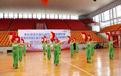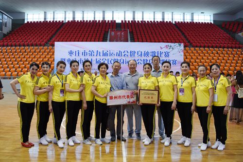 滕州市老年体协秧歌队,在枣庄市第九届运动会上,成绩突出,获得优胜奖。枣庄市九运会秧歌大赛,